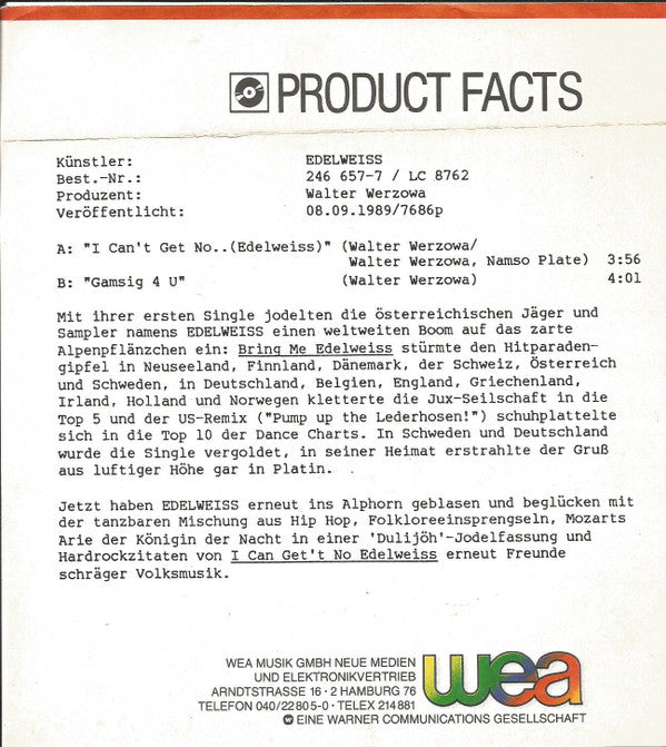 7" Single: Edelweiss - I Can't Get No...Edelweiss