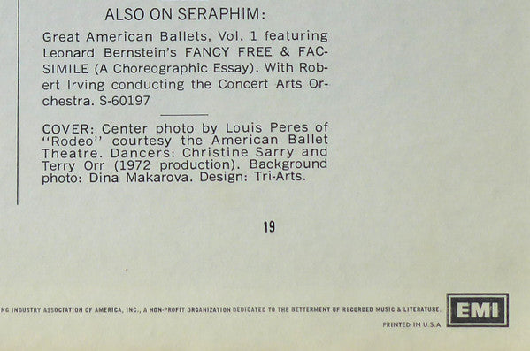 Aaron Copland, The Concert Arts Orchestra, Robert Irving - Great American Ballets, Vol. 2: Copland: Rodeo (Four Dance Episodes) & Appalachian Spring (Suite)