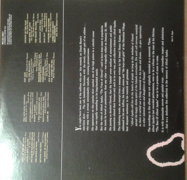 This album features the smooth baritone voice of Alfred Apaka, a celebrated Hawaiian singer known for popularizing traditional Hawaiian music and hula, alongside the harmonious backing of The Hawaiian Village Serenaders.