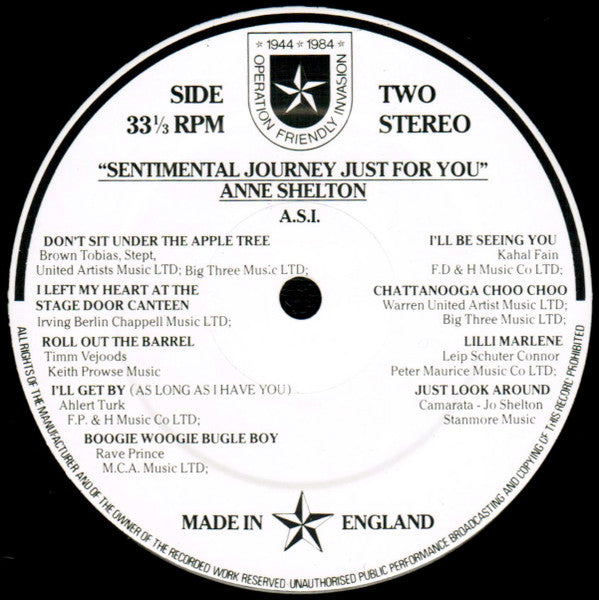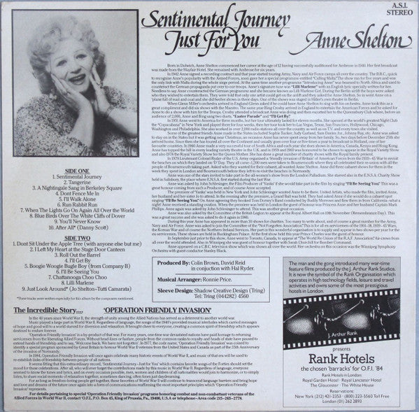 "Sentimental Journey Just For You" features Anne Shelton's soothing vocals, blending traditional pop and easy listening styles, and is notable for its heartfelt interpretations of classic standards that resonate with nostalgia.