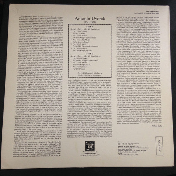 This album features the Czech Philharmonic Orchestra under Václav Neumann, bringing to life Dvořák's vibrant Slavonic Dances, which are celebrated for their folk-inspired melodies and rhythmic vitality, reflecting the composer's deep connection to his Czech heritage.