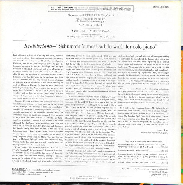 Arthur Rubinstein, Robert Schumann - Schumann Kreisleriana • The Prophet Bird • Arabeske