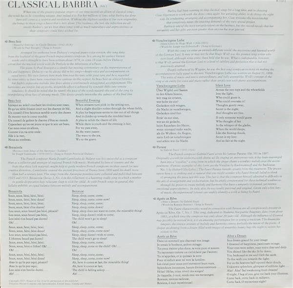 "Classical ... Barbra" features Barbra Streisand's interpretations of classical music, showcasing her powerful vocal range and emotional depth, and includes orchestral arrangements by renowned conductor and composer, Michael Tilson Thomas.