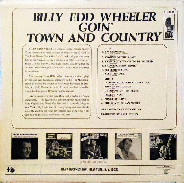"Goin' Town And Country" features Billy Edd Wheeler's blend of folk, country, and pop influences, highlighting his storytelling prowess and the emotional depth of his songwriting.