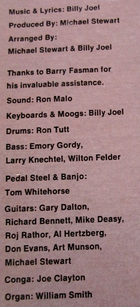"Streetlife Serenade" features a blend of pop and rock influences, with notable tracks like "The Entertainer" highlighting Billy Joel's signature storytelling and piano-driven melodies, while the album's cover art reflects a vibrant urban scene that complements its themes of city life.