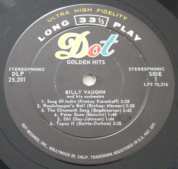 "Billy Vaughn And His Orchestra - Golden Hits" features the smooth, easy-listening sound that characterized Vaughn's style, blending orchestral arrangements with popular melodies to create a comforting musical experience.