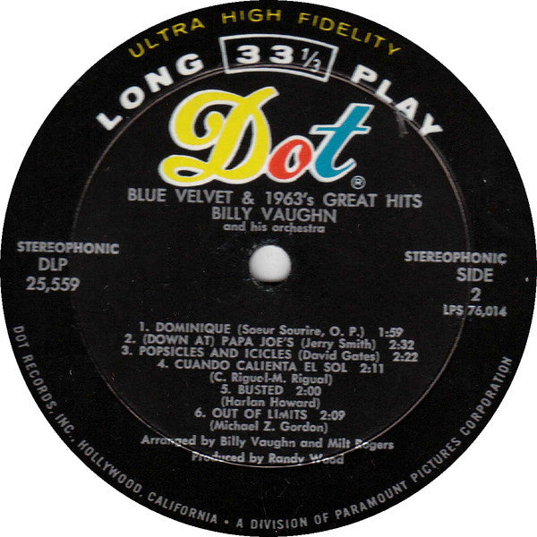 "Billy Vaughn - Blue Velvet & 1963's Great Hits" features Vaughn's signature easy listening style, blending lush orchestration with popular melodies of the time, and includes his well-known rendition of "Blue Velvet," which helped popularize the song in the instrumental genre.