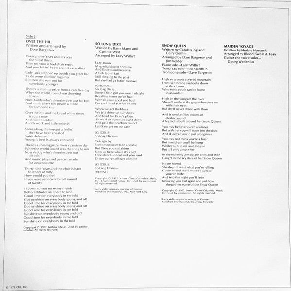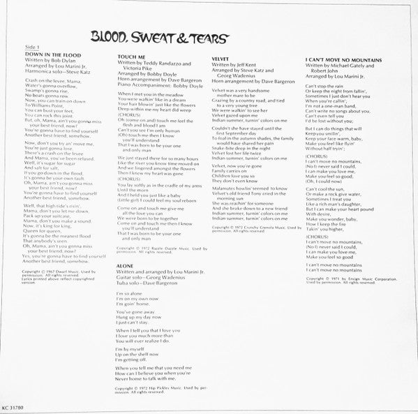 "New Blood" by Blood, Sweat and Tears features a blend of jazz, rock, and pop, and is notable for its incorporation of orchestral arrangements, showcasing the band's evolution and ambition in expanding their musical palette.