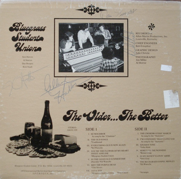 The album "The Older... The Better" by Bluegrass Student Union features a blend of traditional bluegrass instrumentation and harmonies, reflecting the band's commitment to preserving the genre's roots while infusing it with youthful energy.