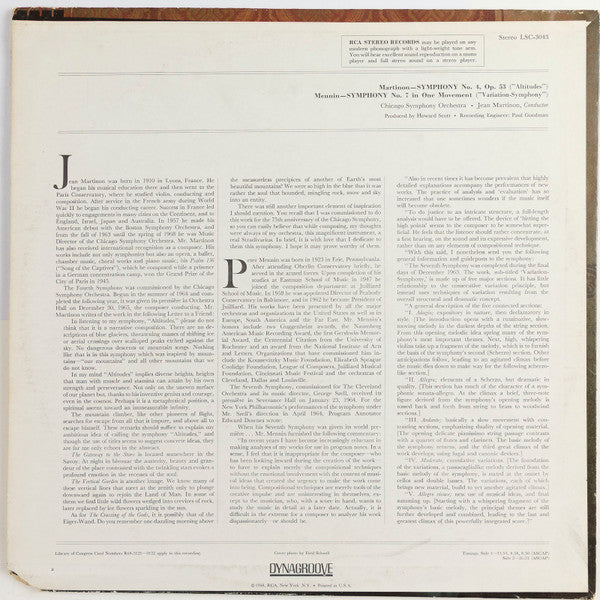 Jean Martinon, Peter Mennin, The Chicago Symphony Orchestra - First Recordings - Symphony No. 4 "Altitudes" / Symphony No. 7 "Variation-Symphony"
