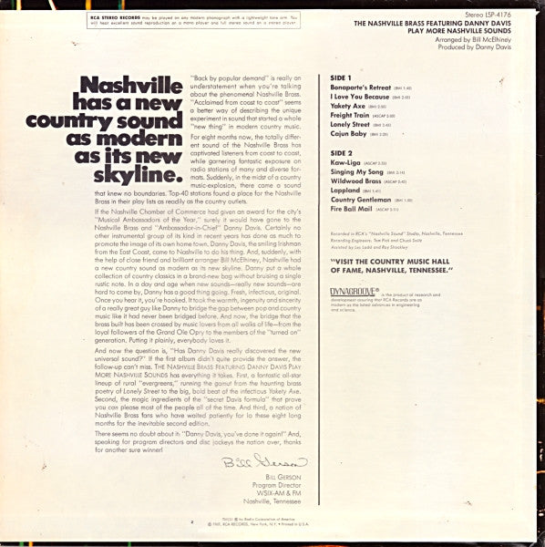 "Play More Nashville Sounds" features the lively blend of country and brass instrumentation that Danny Davis and The Nashville Brass are known for, highlighting the unique fusion of traditional country melodies with vibrant brass arrangements.