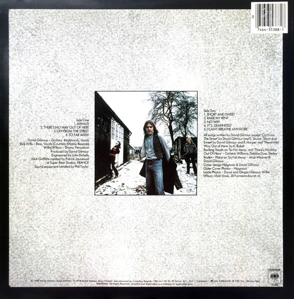 David Gilmour's self-titled debut album features a blend of rock and blues, highlighting his distinctive guitar work and emotive vocals, with contributions from notable musicians like Richard Wright and Chuck Leavell.