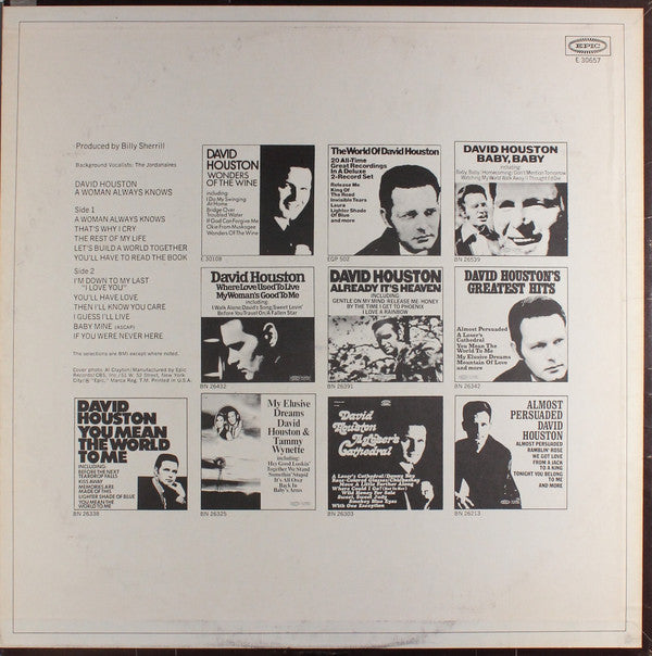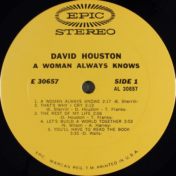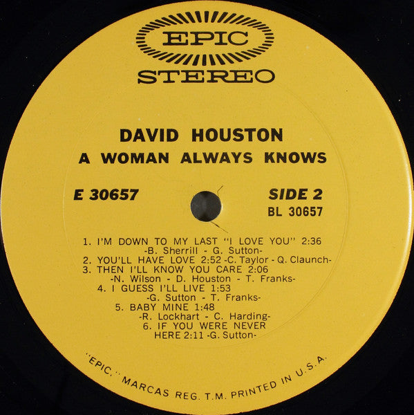 "A Woman Always Knows" features David Houston's smooth blend of country and pop, highlighting his emotive vocal style and the poignant storytelling that characterizes much of his work.
