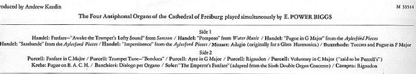 E. Power Biggs, Georg Friedrich Händel, Henry Purcell, Wolfgang Amadeus Mozart, Dieterich Buxtehude, Johann Ludwig Krebs, Adriano Banchieri, André Campra - The Four Antiphonal Organs Of The Cathedral Of Freiburg Played Simultaneously By