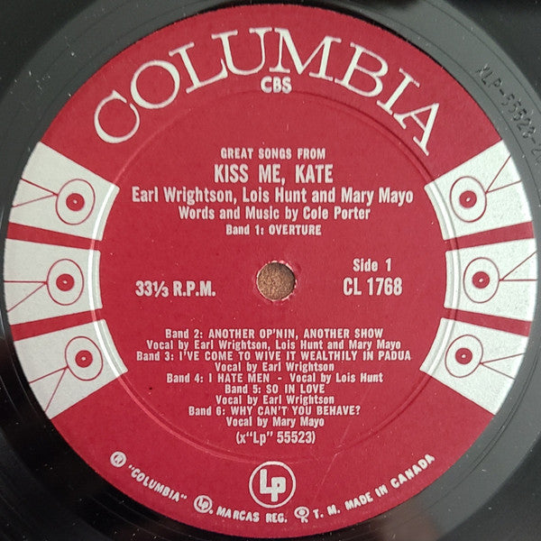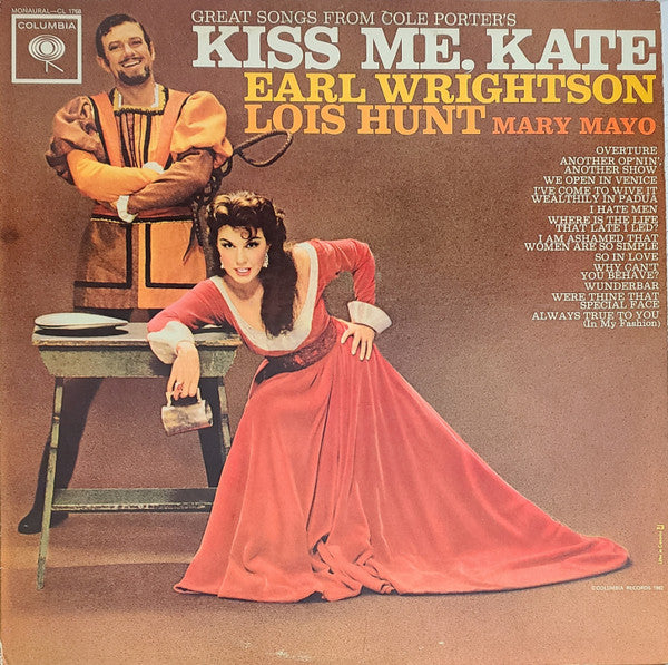 The album features a vibrant recording of Cole Porter's classic musical "Kiss Me, Kate," highlighting the vocal talents of Earl Wrightson, Lois Hunt, and Mary Mayo, and is notable for its rich orchestration and engaging performances that bring the show's witty dialogue and lively songs to life.