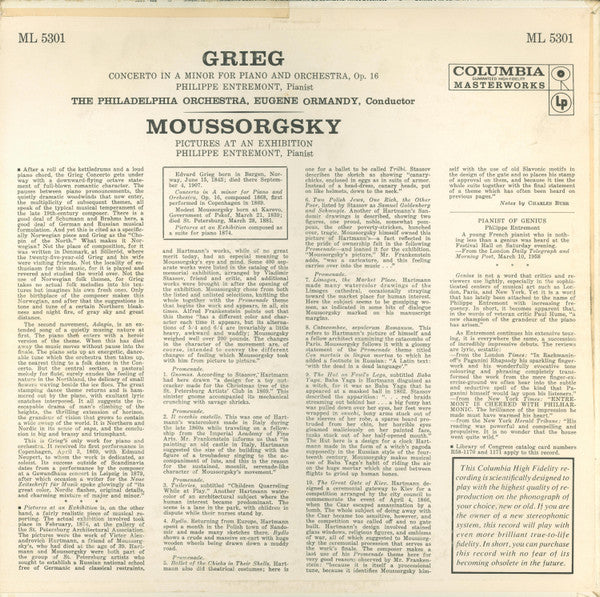 Edvard Grieg, Philippe Entremont, The Philadelphia Orchestra, Eugene Ormandy, Modest Mussorgsky, Philippe Entremont - Concerto For Piano And Orchestra In A Minor, Op. 16 / Pictures At An Exhibition
