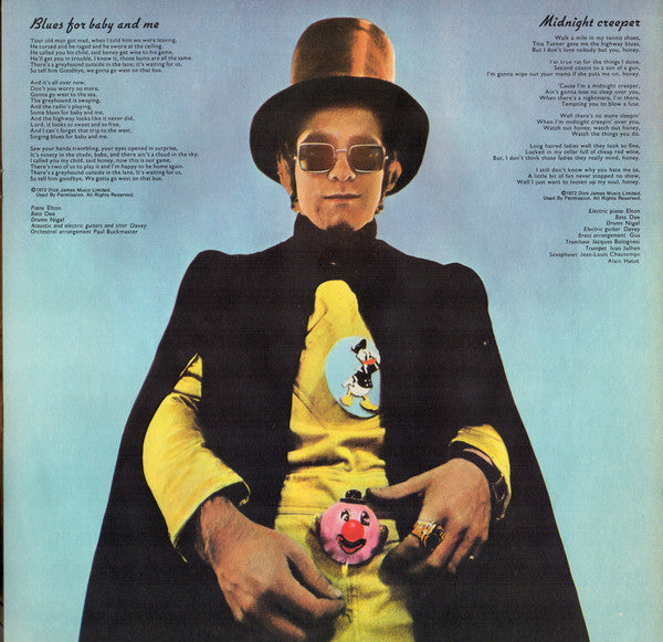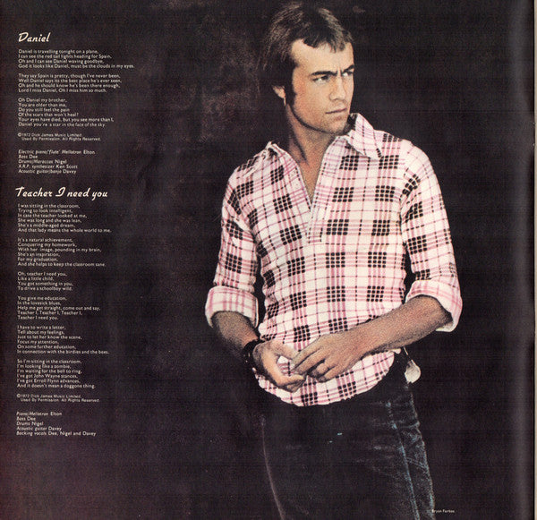 "Don't Shoot Me I'm Only The Piano Player" features a blend of rock and pop, and is notable for its incorporation of lush orchestration and the hit single "Daniel," which highlights Elton John's storytelling prowess.