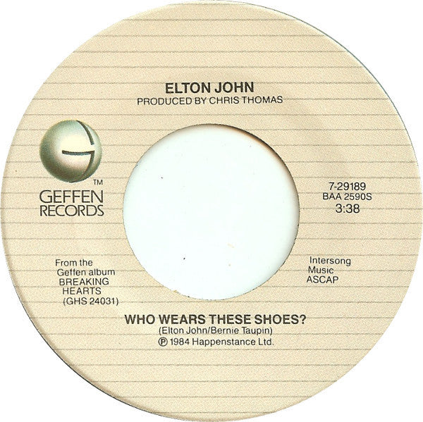 "Who Wears These Shoes" features a blend of pop and rock elements, with Elton John's signature piano-driven melodies complemented by a vibrant production style that reflects the evolving sound of the era.