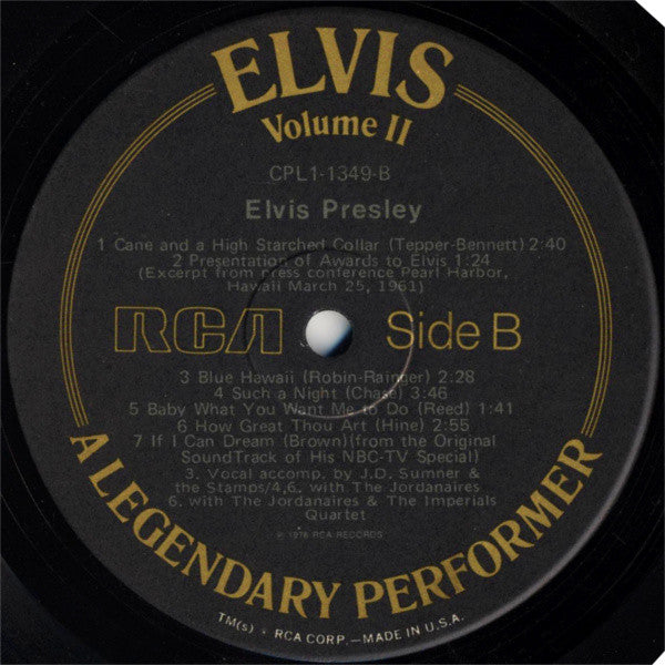 "A Legendary Performer - Volume 2" features a collection of Elvis Presley's iconic live performances and rare recordings, highlighting his dynamic stage presence and vocal prowess that solidified his status as the King of Rock and Roll.