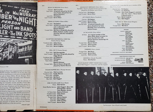 Enoch Light And The Light Brigade's album features vibrant renditions of classic big band tunes from the thirties, notable for its innovative use of stereo recording techniques that enhance the lively orchestration and arrangements.