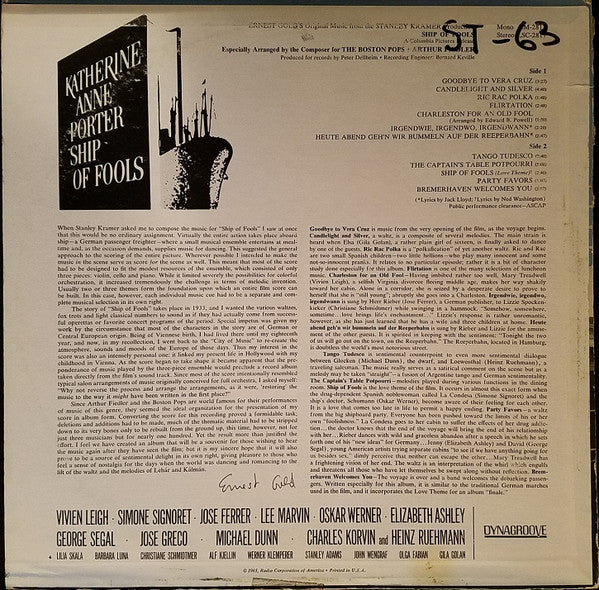 "Ship Of Fools" features the lush orchestration of Arthur Fiedler and the Boston Pops Orchestra, bringing to life Ernest Gold's evocative score for the film, which blends classical influences with a cinematic flair that enhances the emotional depth of the narrative.