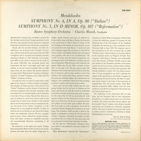 Felix Mendelssohn-Bartholdy, Charles Munch, Boston Symphony Orchestra - Italian And Reformation Symphonies