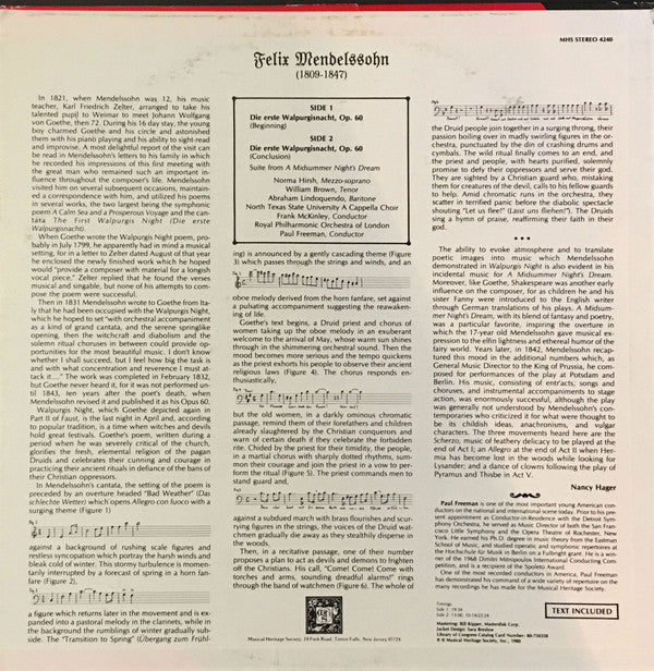 Felix Mendelssohn-Bartholdy, North Texas State University A Cappella Choir, Frank McKinley, Royal Philharmonic Orchestra, Paul Freeman - Die Erste Walpurgisnacht Op. 60 / Suite From A Midsummer Night's Dream