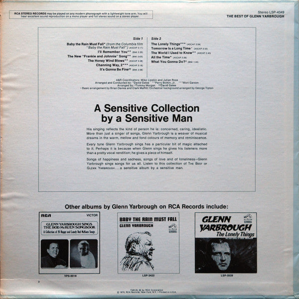 "The Best Of Glenn Yarbrough" features a collection of the folk singer's most beloved tracks, highlighting his rich baritone voice and emotive storytelling that resonated deeply with audiences during the folk revival era.