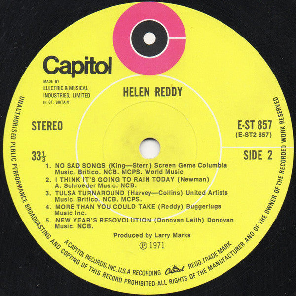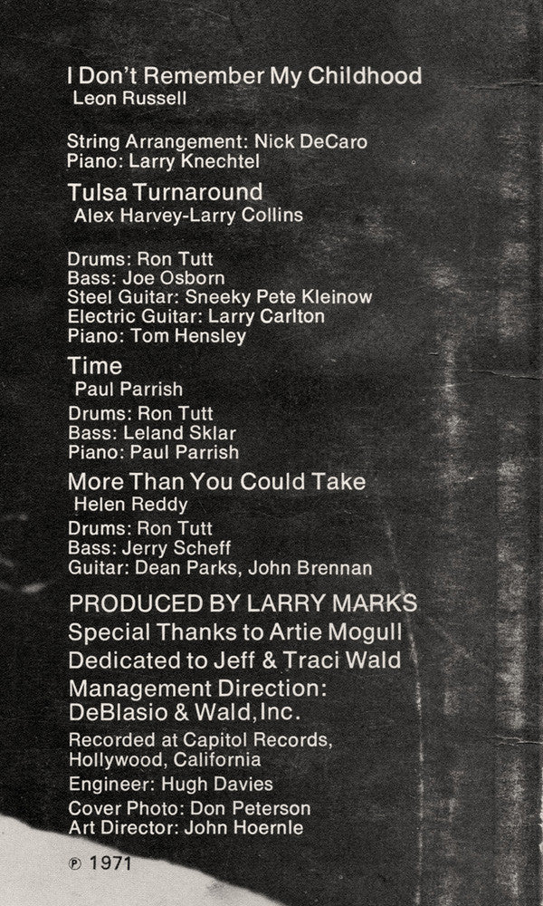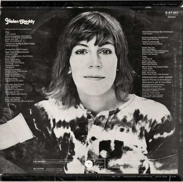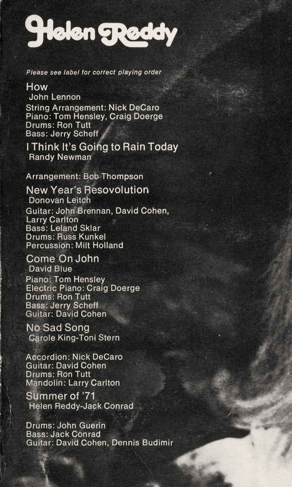 Helen Reddy's self-titled album features a blend of pop and soft rock, and it is notable for including her iconic anthem "I Am Woman," which became a rallying cry for the feminist movement.