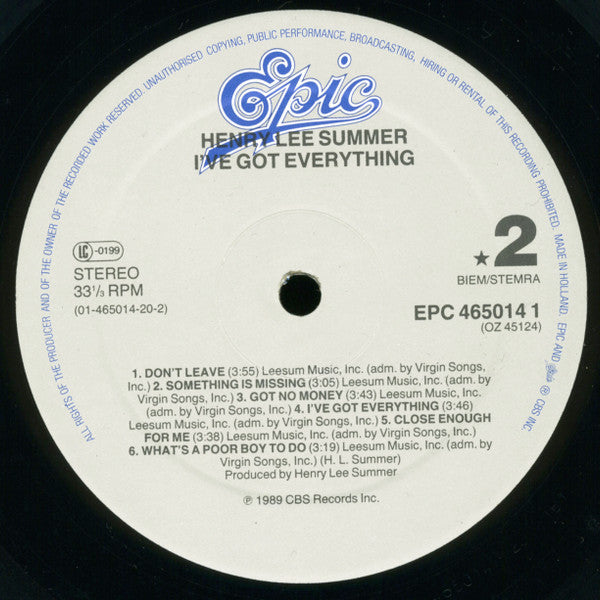 "I've Got Everything" features a blend of rock and pop influences, highlighting Henry Lee Summer's distinctive raspy voice and storytelling lyrics that resonate with themes of love and life experiences.