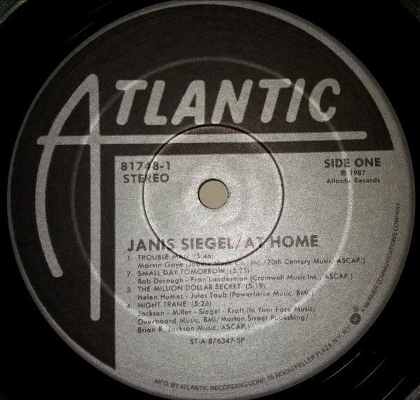 "At Home" by Janis Siegel features a blend of jazz and pop influences, highlighting her rich vocal style and intimate arrangements that create a cozy, personal atmosphere throughout the album.