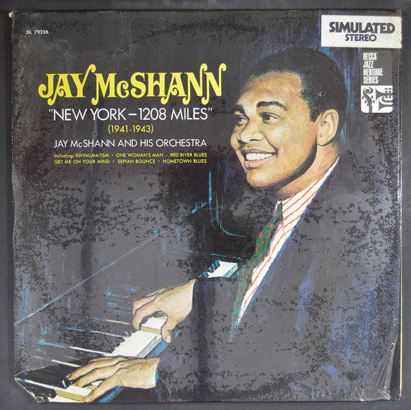 "New York - 1208 Miles" features Jay McShann's vibrant blend of Kansas City jazz and big band sounds, showcasing his innovative piano style and the rich contributions of his talented orchestra during a pivotal time in American music history.