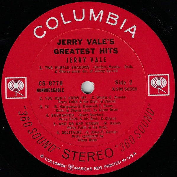 "Jerry Vale's Greatest Hits" features the smooth, romantic balladry that defined Vale's career, highlighting his ability to evoke deep emotion through lush orchestral arrangements and heartfelt lyrics.