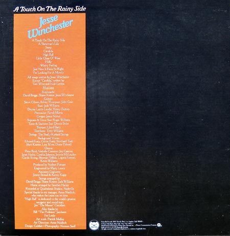 "A Touch On The Rainy Side" features Jesse Winchester's gentle blend of folk and country, highlighted by his poignant songwriting and the lush arrangements of celebrated producer Robbie Robertson.
