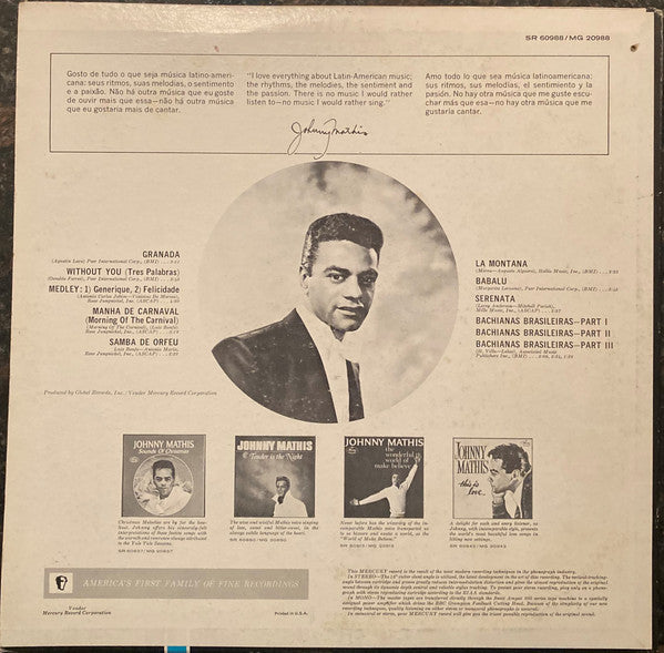 "Olé" by Johnny Mathis features a vibrant blend of Latin and pop influences, showcasing his smooth vocal style alongside lush orchestral arrangements that highlight the cultural richness of the music.