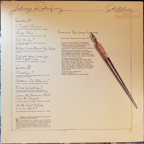 "Sketches" features Johnny Rodriguez's signature blend of country and Tejano influences, highlighting his storytelling prowess through a collection of heartfelt songs that reflect his roots and personal experiences.