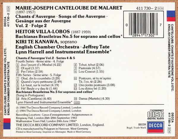 Joseph Canteloube, Heitor Villa-Lobos, Kiri Te Kanawa, English Chamber Orchestra, Jeffrey Tate - Chants D'Auvergne (Vol. 2) / Bachianas Brasileiras No. 5