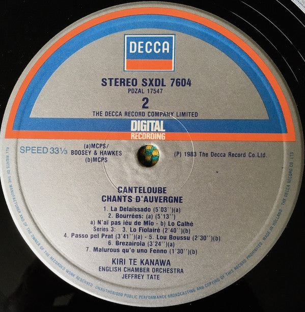 This album features Kiri Te Kanawa's exquisite soprano voice interpreting the folk-inspired melodies of Joseph Canteloube, highlighting the rich cultural heritage of the Auvergne region in France, with lush orchestral arrangements by the English Chamber Orchestra under the baton of Jeffrey Tate.