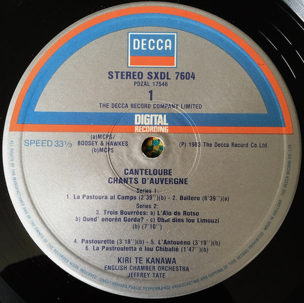 Joseph Canteloube, Kiri Te Kanawa, English Chamber Orchestra, Jeffrey Tate - Chants D'Auvergne Vol 1