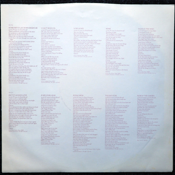 Karla Bonoff's self-titled album features her poignant songwriting and emotive vocals, with several tracks later becoming hits for other artists, highlighting her influence in the singer-songwriter genre.