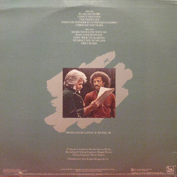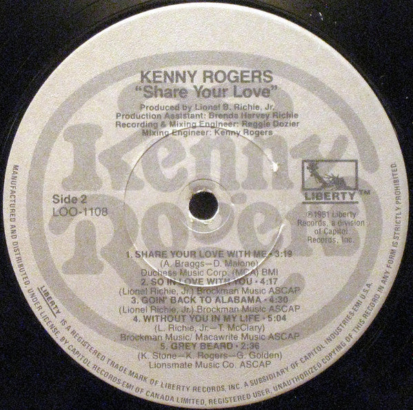 "Share Your Love" features Kenny Rogers blending country and pop elements, and is notable for its heartfelt storytelling and the hit single "Share Your Love with Me," which highlights his smooth vocal delivery and emotional depth.