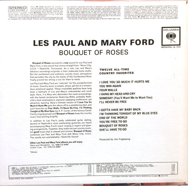 "Bouquet of Roses" features the harmonious blend of Les Paul's innovative guitar techniques and Mary Ford's sweet vocals, highlighting their pioneering role in popularizing multi-track recording in the music industry.