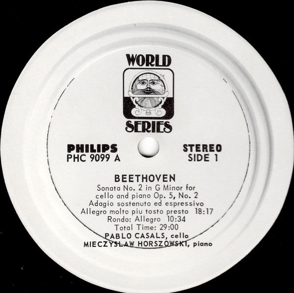 This album features renowned cellist Pablo Casals performing Beethoven's Cello Sonatas Nos. 2 and 5, highlighting Casals' deep interpretative insight and his role in popularizing the cello repertoire.
