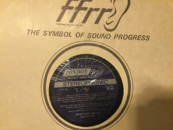 "Mantovani And His Orchestra - Songs Of Praise" features lush orchestral arrangements of traditional hymns and spiritual songs, highlighting Mantovani's signature cascading strings that create a soothing and uplifting listening experience.
