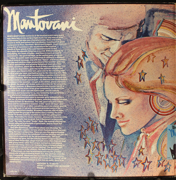 This album features the lush orchestral arrangements of Mantovani, known for his signature cascading strings, which helped popularize the easy listening genre and brought a cinematic quality to classic hits.