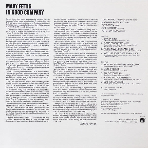"In Good Company" features Mary Fettig's expressive flute work alongside a blend of jazz and contemporary influences, highlighting her collaborations with a diverse array of talented musicians.