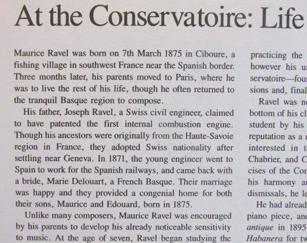This album features iconic orchestral works by Maurice Ravel, known for their rich textures and innovative orchestration, with "Boléro" often celebrated for its hypnotic crescendo and rhythmic drive.