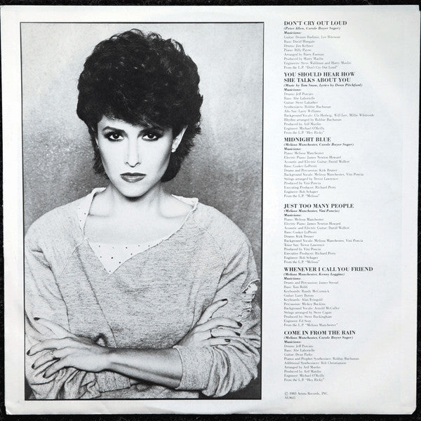 Melissa Manchester's "Greatest Hits" features a collection of her most beloved songs, highlighting her blend of pop and soft rock, and includes the Grammy-winning track "Don't Cry Out Loud," which showcases her powerful vocal delivery and emotional depth.