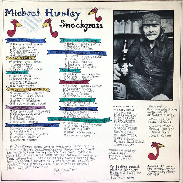 "Snockgrass" features Michael Hurley's distinctive blend of folk, blues, and whimsical storytelling, reflecting his unique approach to songwriting and his deep roots in the American folk tradition.