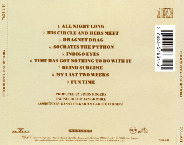 "Love Hysteria" features a blend of post-punk and gothic rock, showcasing Peter Murphy's distinctive baritone and lyrical depth, while also incorporating elements of new wave and world music influences.